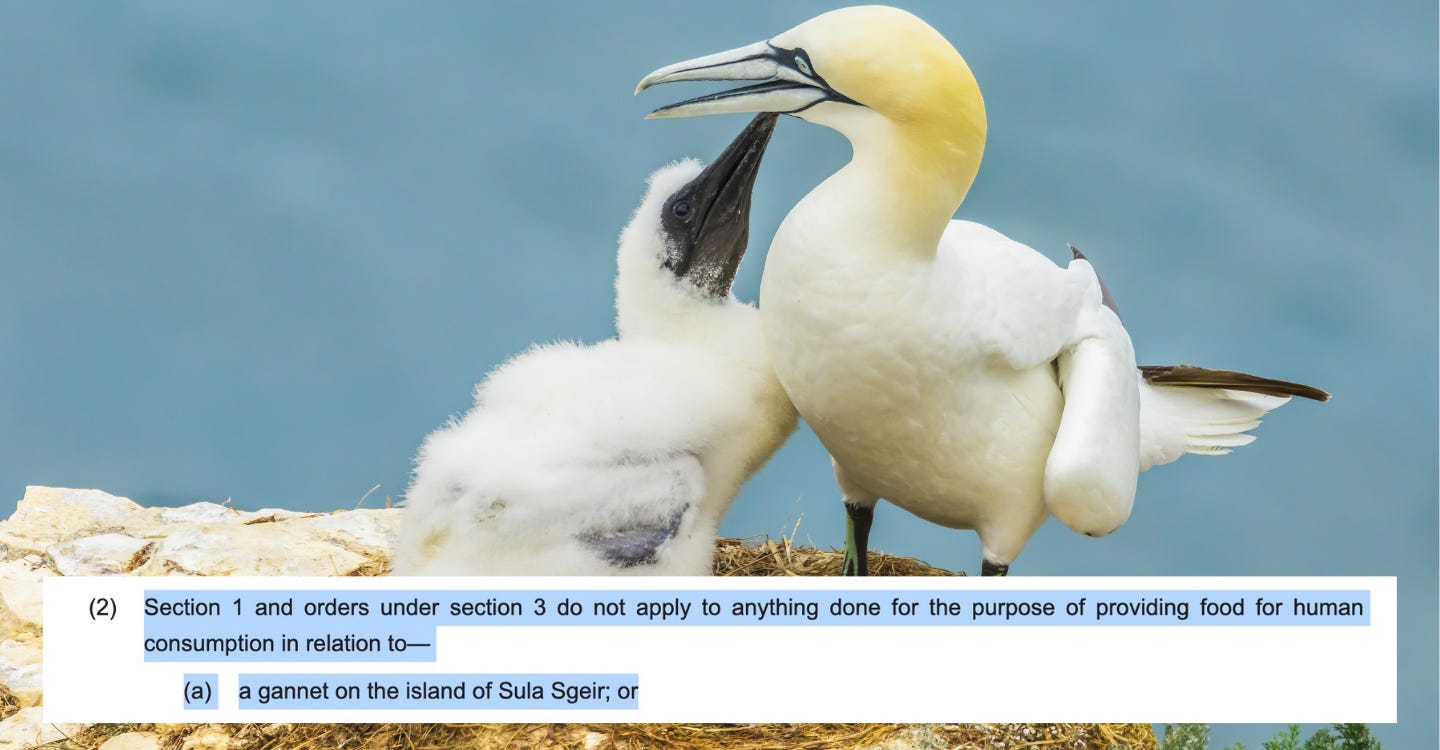 If the Guga hunt is to end permanently, we must address the root of the issue: the legal exemption that allows it to continue. Section 16 of the Wildlife and Countryside Act 1981 specifically permits the taking of gannets on Sula Sgeir for human consumption.