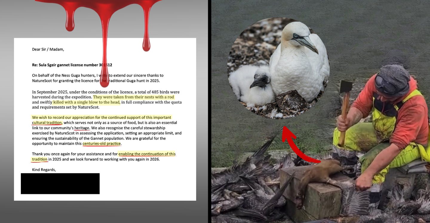 In the letter, the Guga hunters praise NatureScot for “enabling” the hunt. Not for necessity. Not for survival. For tradition.